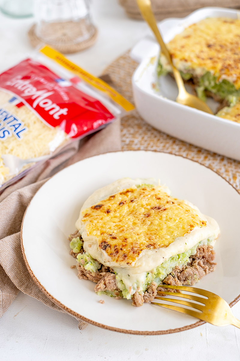 - Bedek de bodem met het gehakt en schep er de puree bovenop