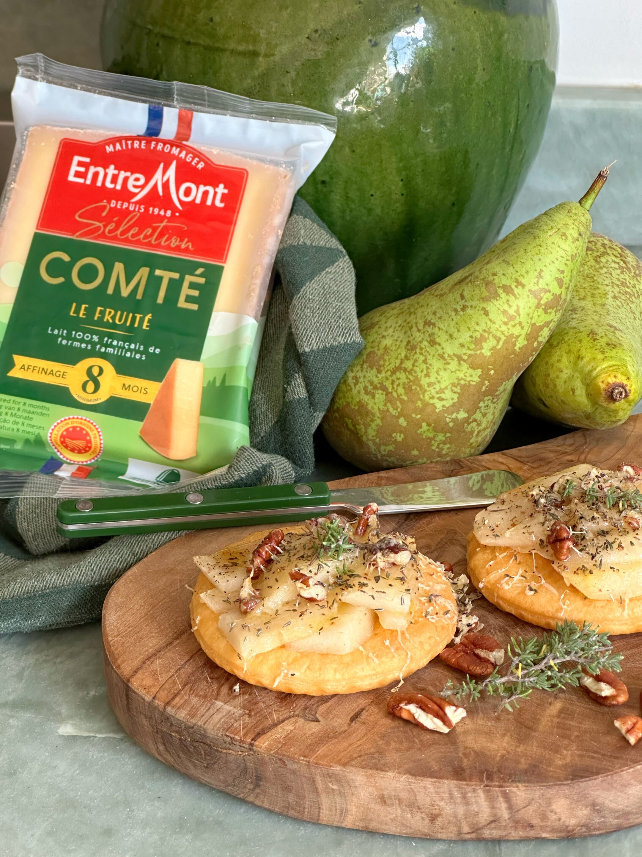 - Strooi er pecannoten en Comté over, kruid met tijm, zout, peper en besprenkel met olijfolie.