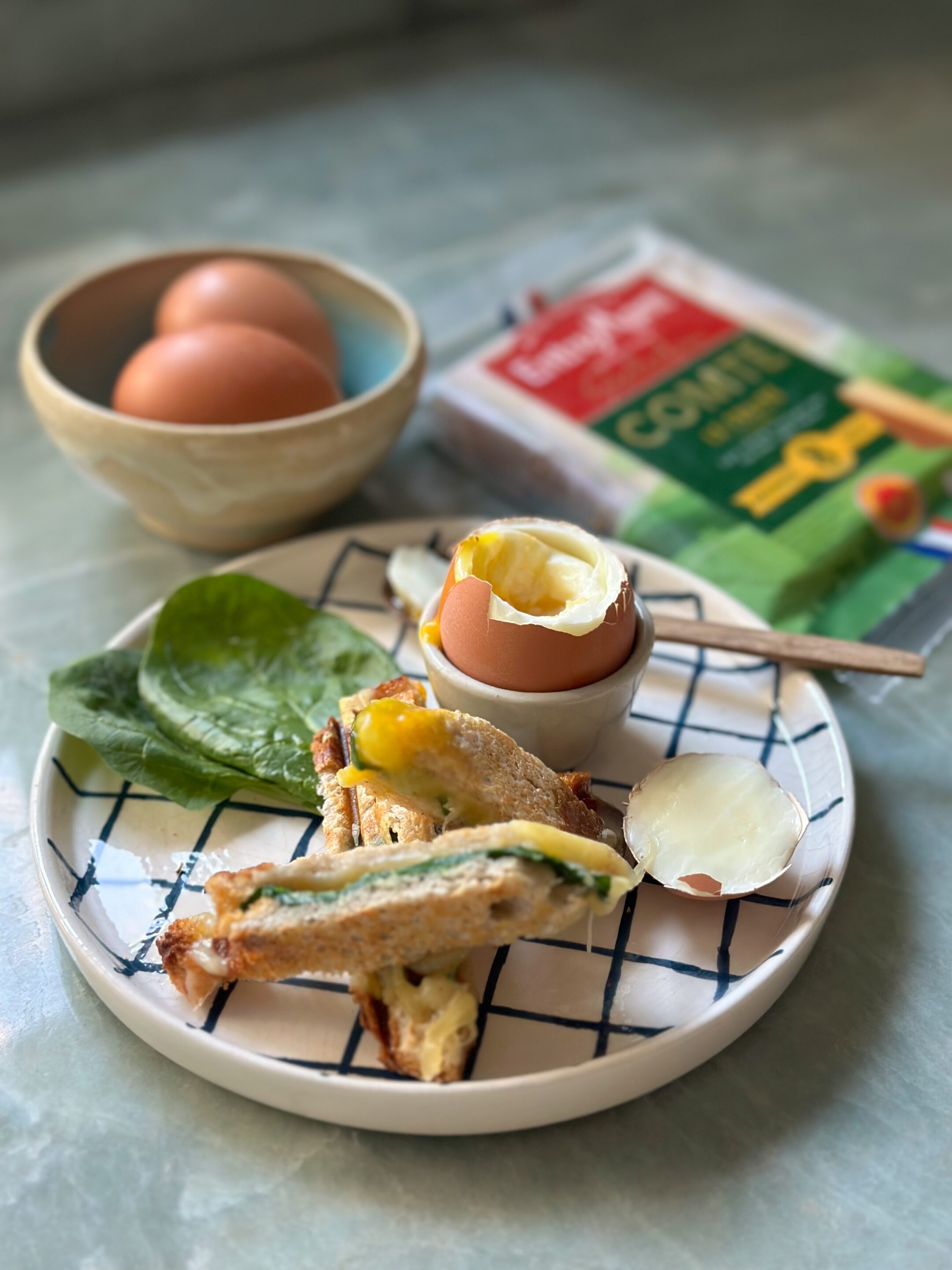 Œuf à la coque, soldats au Comté et épinards